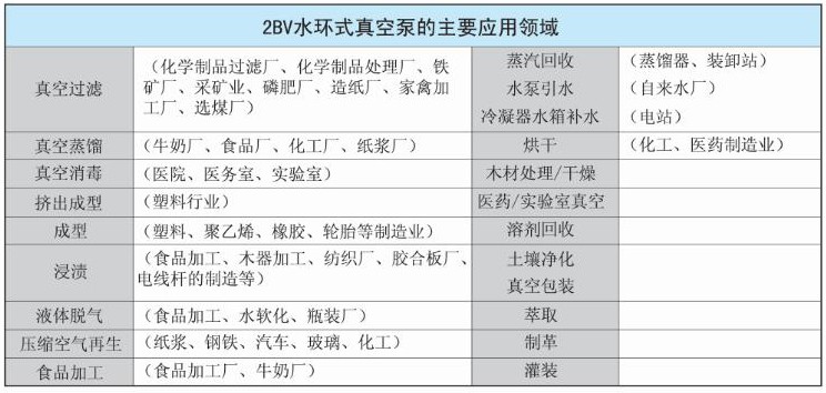 2BV系列水環式真空泵適用于抽出氣體和水蒸氣,吸氣壓力可以達到33mbar絕壓(97%真空度) 。當水環真空泵在吸氣壓力接近極限真空(工作液的飽和蒸汽壓)下長期工作時,應聯接汽蝕保護管,以對泵進行保護。作為壓縮機用時,其壓力大至0.26MPa (絕壓)。2BV系列水環真空泵作為新一-代節能型產品,其以優良的性能及眾多優點將取代同性能的SK/2SK系列水環真空泵及W/WY/WL系列往復真空泵。2BV2- -Ex/2BV6系列水環式真空泵/壓縮機主要用于抽出爆炸性氣體,及各類易燃、易爆環境中工作,其性能參數與2BV2/2BV5系列相同。