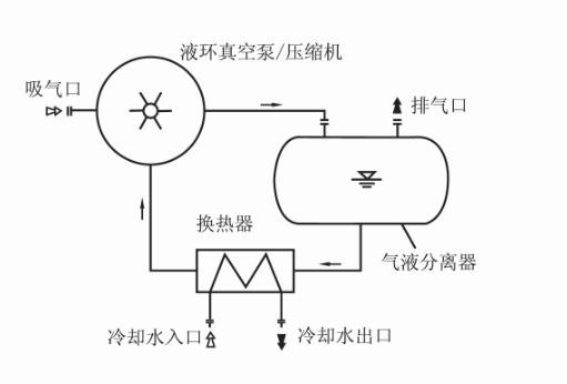 液環(huán)真空泵/壓縮機閉路循環(huán)系統(tǒng)主要部件包括: